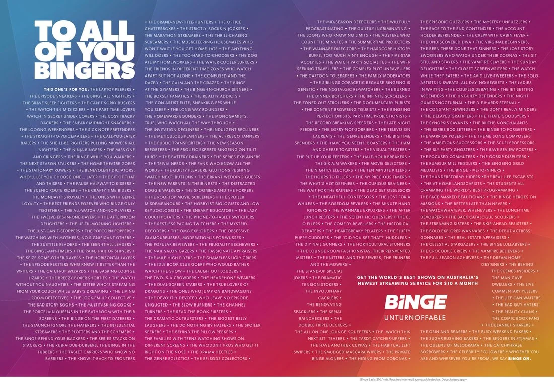 And, in the most epic copywriting exercise of my life, we ran one DPS containing 264 Bingers, written in rhyming couplets.